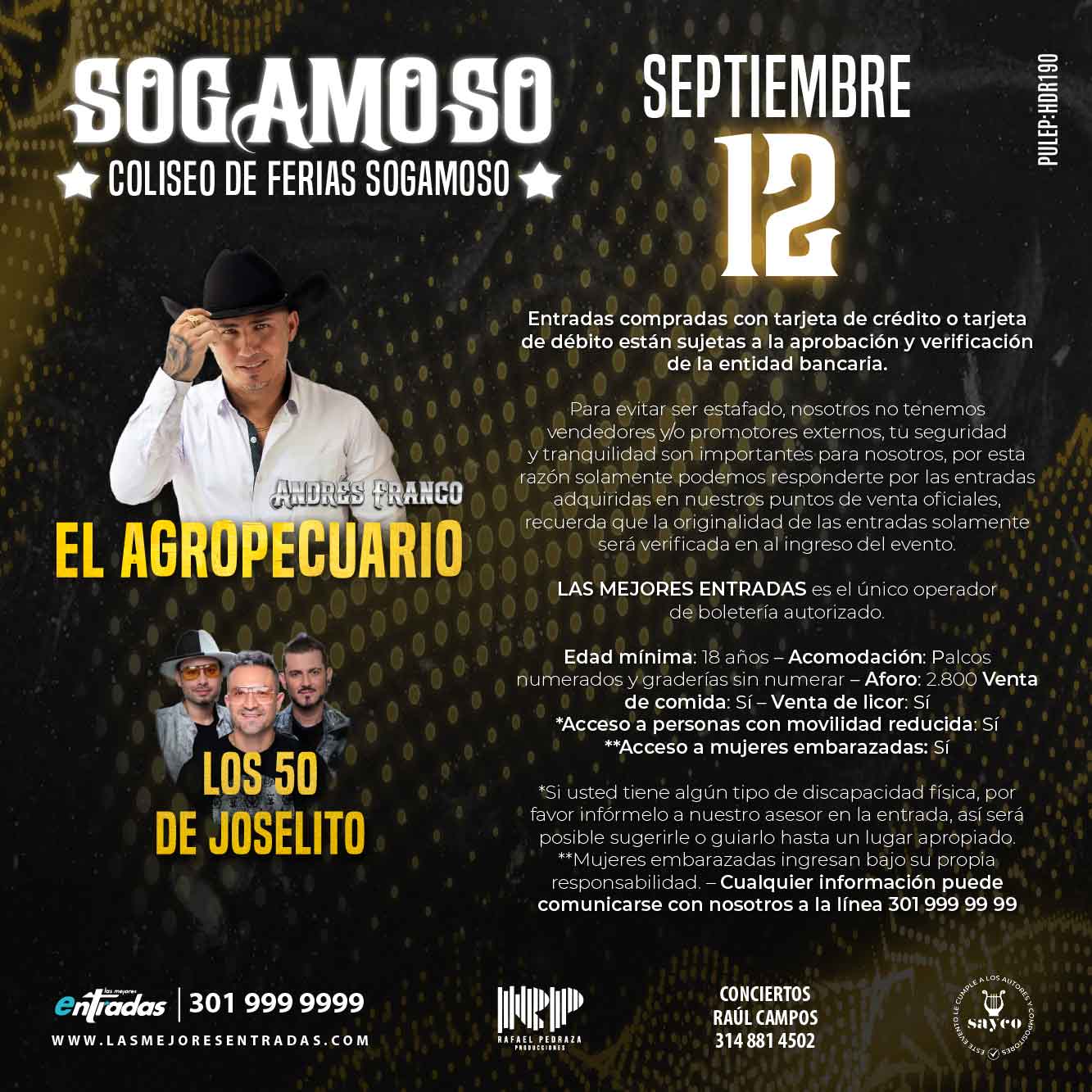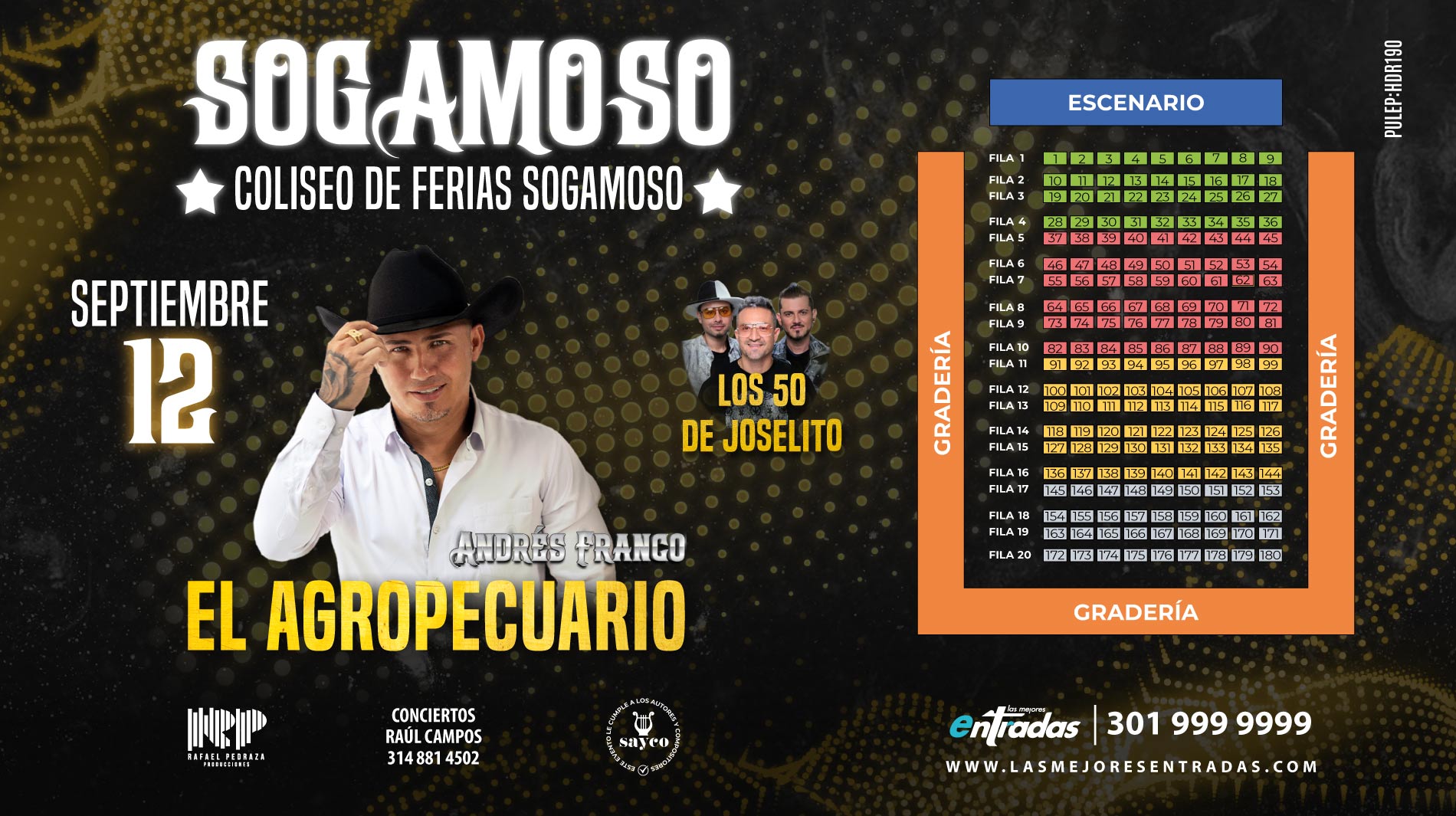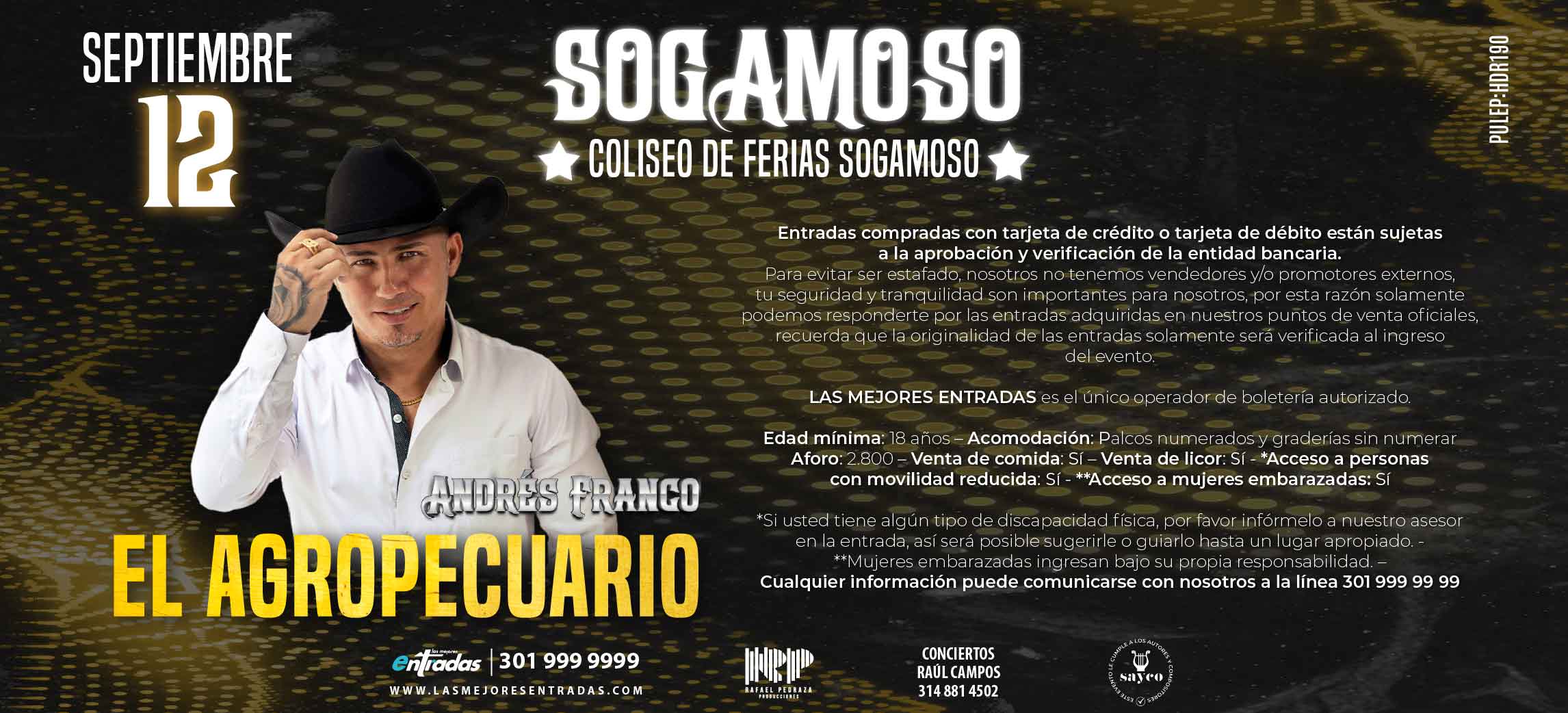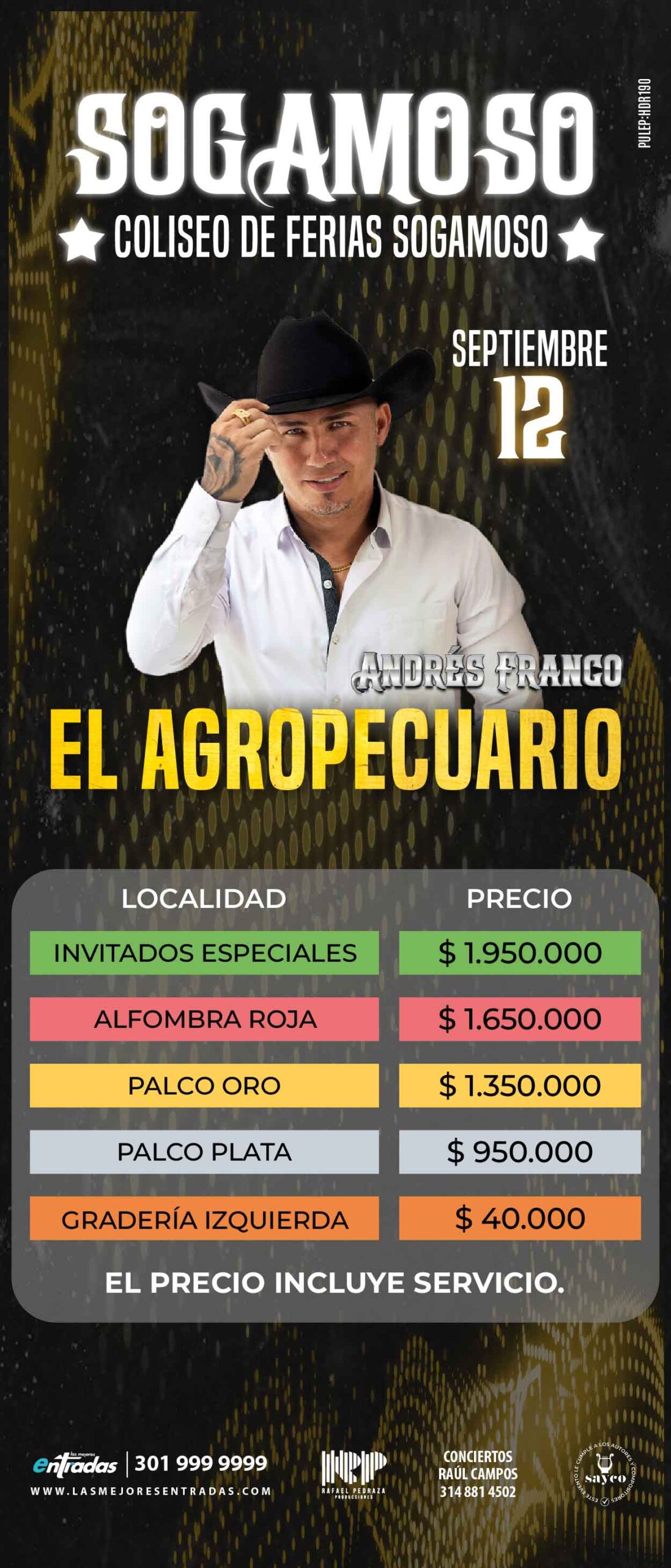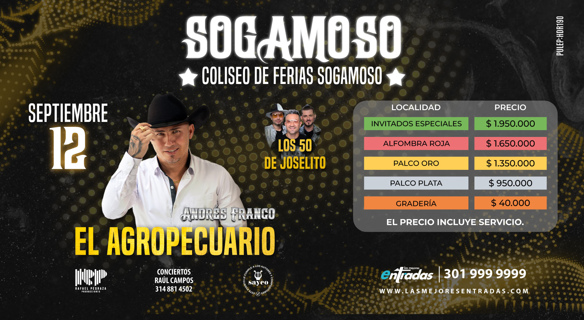 Este 12 de septiembre, vive una noche llena de música popular y parranda en el Coliseo de Ferias de Sogamoso con Andrés Franco y el show especial de Los 50 de Joselito.